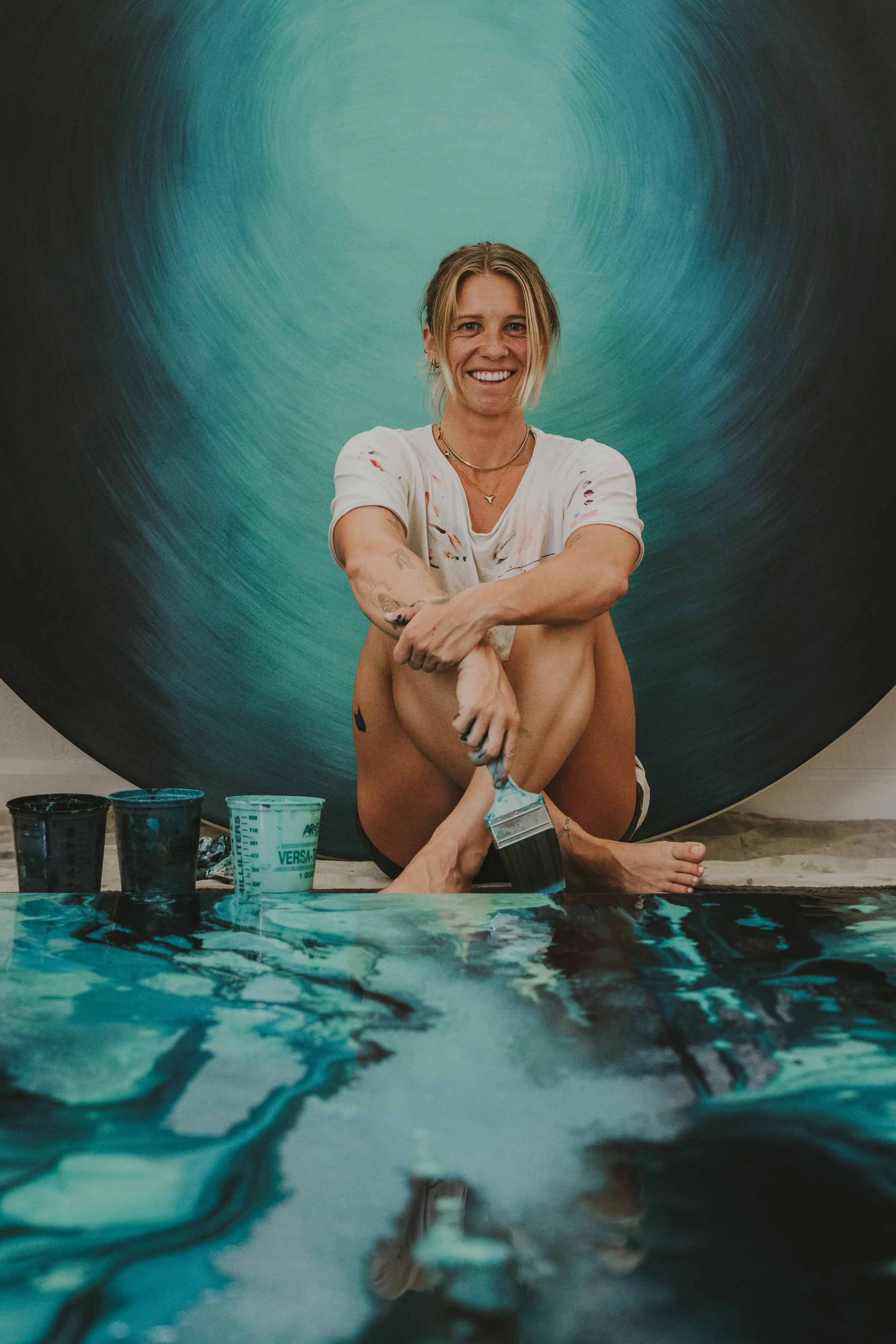 Wylie Bee is a San Diego–based artist and surfer using visual storytelling as a tool for ocean advocacy. After years living in Costa Rica, she returned to Southern California to focus her practice on large-scale paintings and immersive works that confront the realities facing our oceans and demand deeper care for the natural world.